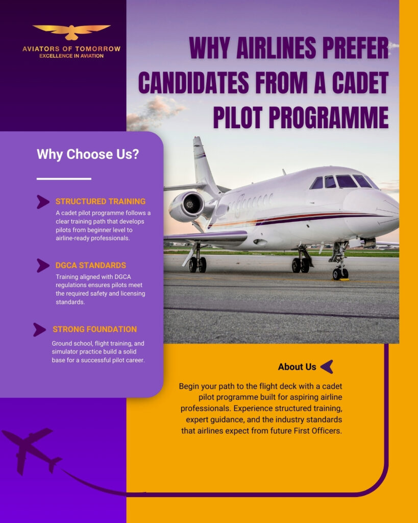 When airlines shortlist candidates for their next batch of First Officers, one pattern emerges consistently across carriers both in India and around the world; they almost always prefer graduates from a cadet pilot programme. Airlines prefer candidates from a cadet pilot programme because these individuals arrive thoroughly prepared, professionally groomed and operationally aligned with the demands of modern commercial aviation. At Aviators of Tomorrow, we have built our entire training philosophy around this reality, ensuring that every cadet who walks through our doors walks out as the pilot every airline is actively looking to hire.